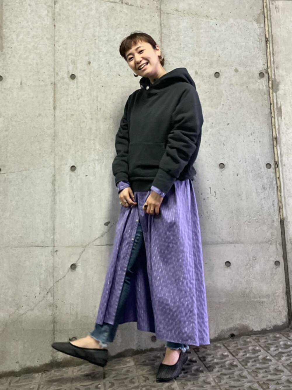 10th限定のコンチョパーカーと、ワンピースをレイヤードして、パーカーを可愛く着てみましたか。首元のコンチョが、ポイントになります。 ワンピースは1枚で着ても、羽織りで着ても、レイヤードしてもいろいろ着まわせるアイテムです。