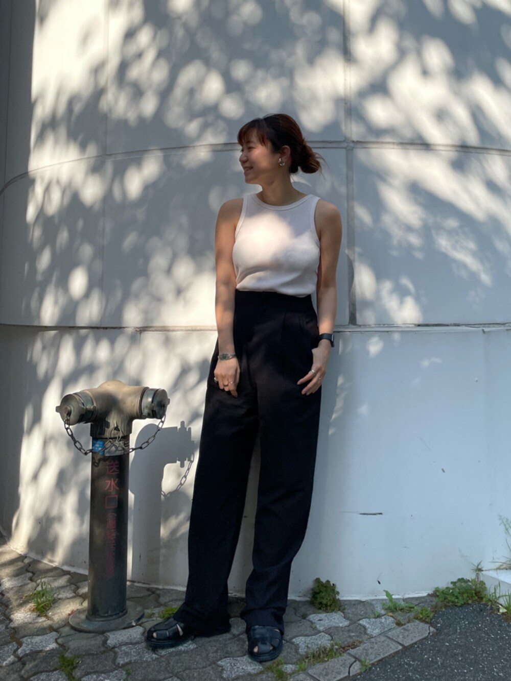ハイウエストのタックパンツが脚長効果抜群です!さらっとした生地が、履き心地も良くてヘビロテです!