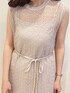 リネン混の糸を使った、おしゃれなメッシュ編みのニットワンピース!!夏まで着れる通気性が良いワンピースは、長い期間着て頂けるので嬉しいですね♡ 後ろのリボンを前に結んで頂いてブラウジングすると、ウエストが細く見えるので低身長さんにおすすめです♡ カップ付きのインナーキャミワンピがセットになっているので透け感を気にする事なく、とっても便利♪ 柔らかい素材なのでお家時間にもぴったりです^_^ 夏にはクリアヒールのサンダルと合わせてお出かけしたいです!こちらのクリアヒールサンダルは傾斜が緩やかで、長時間履いても疲れにくく歩きやすくなっています!