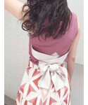 ピンクニット×オレンジスカートの鮮やかで明るいヘルシーcode♡ キラキラとしたラメが散りばめられているスカートは、他の方と差をつけれる今期の夏一推しのデザインです。イレヘム裾のデザインなので低身長の方も履きやすく、足首を出せ涼しげに魅せてくれます(^^) フロントはシンプルでデコルテを綺麗に出してくれるトップスは、コーデの主役級になること間違いなしのバックリボンがとっても可愛い❤︎しっかりとした生地ですが柔らかく着心地◎です! 夏のお出かけにはオシャレ感をプラスしてくれるビーズバックと合わせてみてくださいね♬