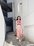 ピンクニット×オレンジスカートの鮮やかで明るいヘルシーcode♡ キラキラとしたラメが散りばめられているスカートは、他の方と差をつけれる今期の夏一推しのデザインです。イレヘム裾のデザインなので低身長の方も履きやすく、足首を出せ涼しげに魅せてくれます(^^) フロントはシンプルでデコルテを綺麗に出してくれるトップスは、コーデの主役級になること間違いなしのバックリボンがとっても可愛い❤︎しっかりとした生地ですが柔らかく着心地◎です! 夏のお出かけにはオシャレ感をプラスしてくれるビーズバックと合わせてみてくださいね♬