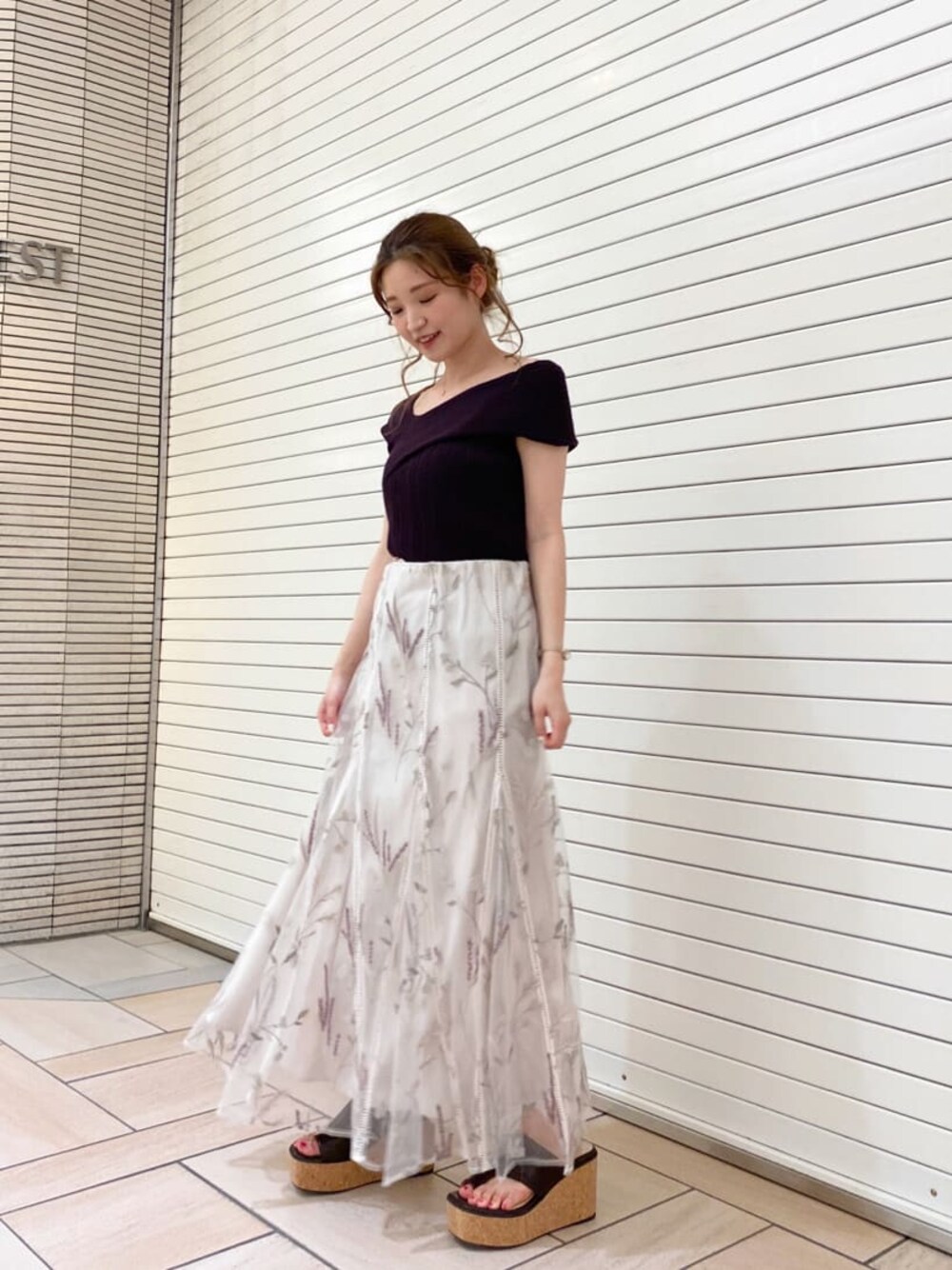 \ \ 大人可愛いcode / / 全店で大人気のチュール刺繍スカート!!一目惚れしてくださる方が多いのですが、私もそのうちの1人です❤︎ 甘さ控えめなカジュアルな花柄が、チュール素材とのギャップがあるのも魅力的❤︎ 形は、縦にすっきりと魅せてくれるハイウエストなので150㎝の私でも綺麗に着られましたよ!トップスはマーキュリー定番のアシメネックニット、おしゃれに落ち着いた女性を演出出来るブラウンをチョイスして大人可愛いcodeに仕上げました)^o^( どちらも、今から着られる素材なので是非、Checkしてみてくださいね!!