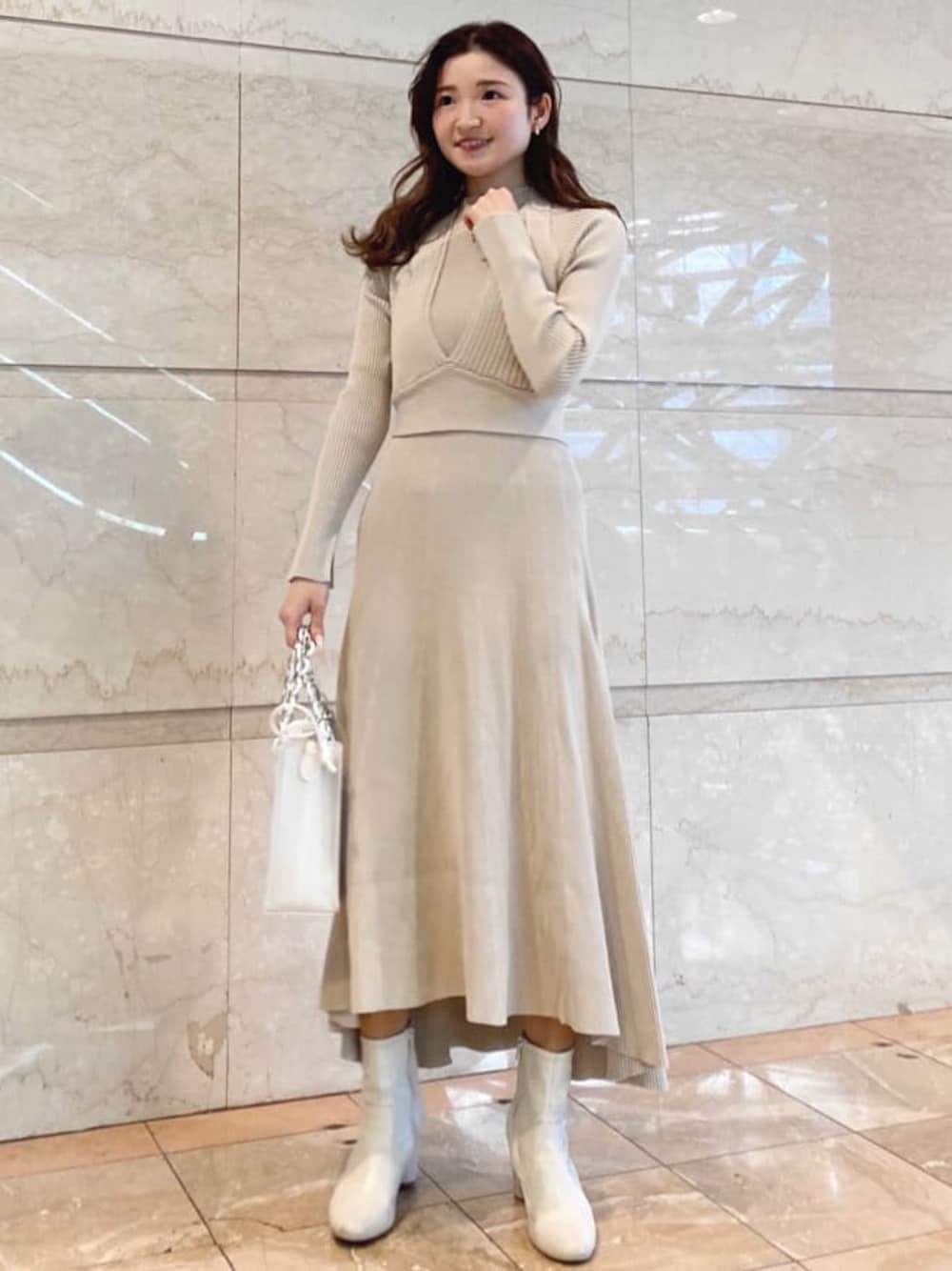 nayuu(MERCURYDUO)のワンピース「ビスチェセットリブニットワンピース」を使ったコーディネート