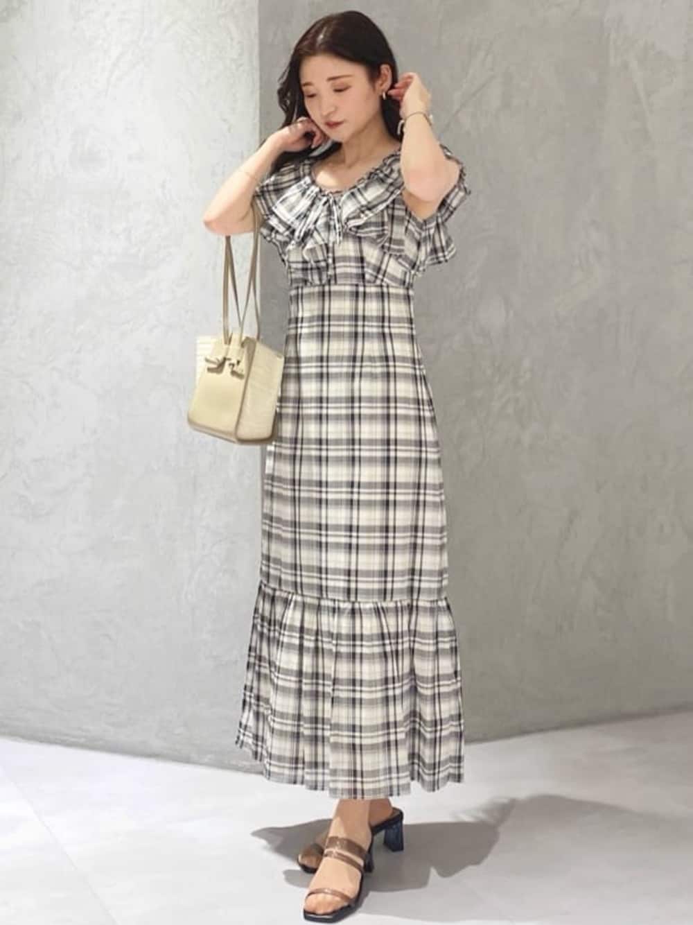 nayuu(MERCURYDUO)のワンピース「チェックラッフルティアードワンピース」を使ったコーディネート