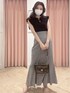 大人可愛い♡ワントーンコーデ 全店で大人気な、セーラーカラーニット!!トレンドを抑えたい方はまずはこのニットから挑戦してみてください♡ ブラックは甘さ控えめなので、大人っぽく決めたい方におすすめです! スカートは、マーメイドシルエットのギンガムスカート♡ハイウエスト切替で、脚長さんに魅せてくれます。履いた時のシルエットに感動します☆ (Instagramに、このコーデのリールを載せています♡ぜひ、Checkしてみてください♡ )