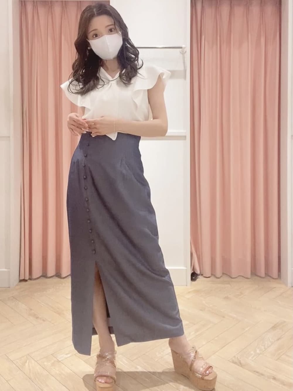 nayuu(MERCURYDUO)のニット/セーター「ボウタイ付ラッフルコンパクトニット」を使ったコーディネート