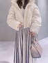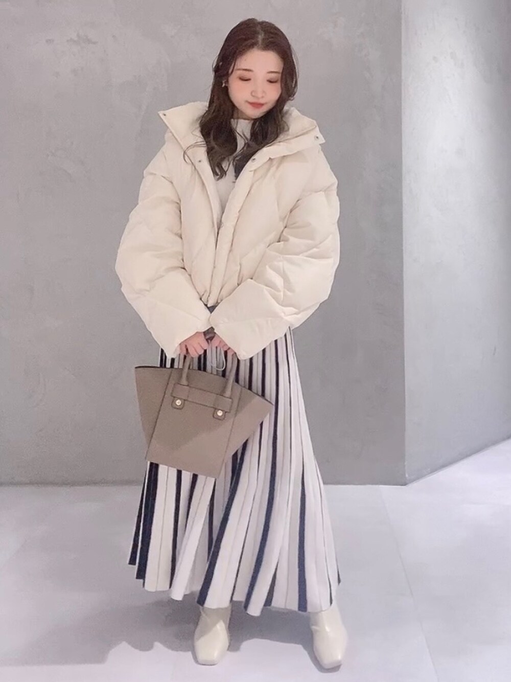 ※Instagram (@mercuryduo_nayuu)リール詳細!〈冬のおすすめ4code〉 【ワンピース】全店で大人気♡なウエスト−3キロ?ワンピース。 わたしはこちらのアイボリーをリアルバイしました♡とっても着やすくて、着てるだけでスタイルが良く見えてしまって良い事しかないワンピースです♪ 気になる腰回りなども、スカートのストライプのデザインのおかげで補ってくれます。 【アウター】ウォッシャブルの洗えるダウン✨少しオーバーサイズですが、ウエストの紐でサイズ調整も出来るので低身長さんでも着膨れなく羽織って頂けますよ!!とっても軽いですが、ダウンが80%も包まれていて本当に暖かいです♡ 【シューズ】かかとのクリアが、可愛いブーツ👢足裏がふかふかしていて店頭で長時間履いていても、痛くならない神ブーツです!!スタッフのリアルバイ率が1番高いです✨