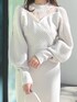 オールホワイトコーデ🤍 【ワンピース】程良い肌の透け感があざと可愛い1枚。切替が高いので足長効果抜群✨ 生地感しっかりしているので、暖かさもあり冬にもぴったりです!