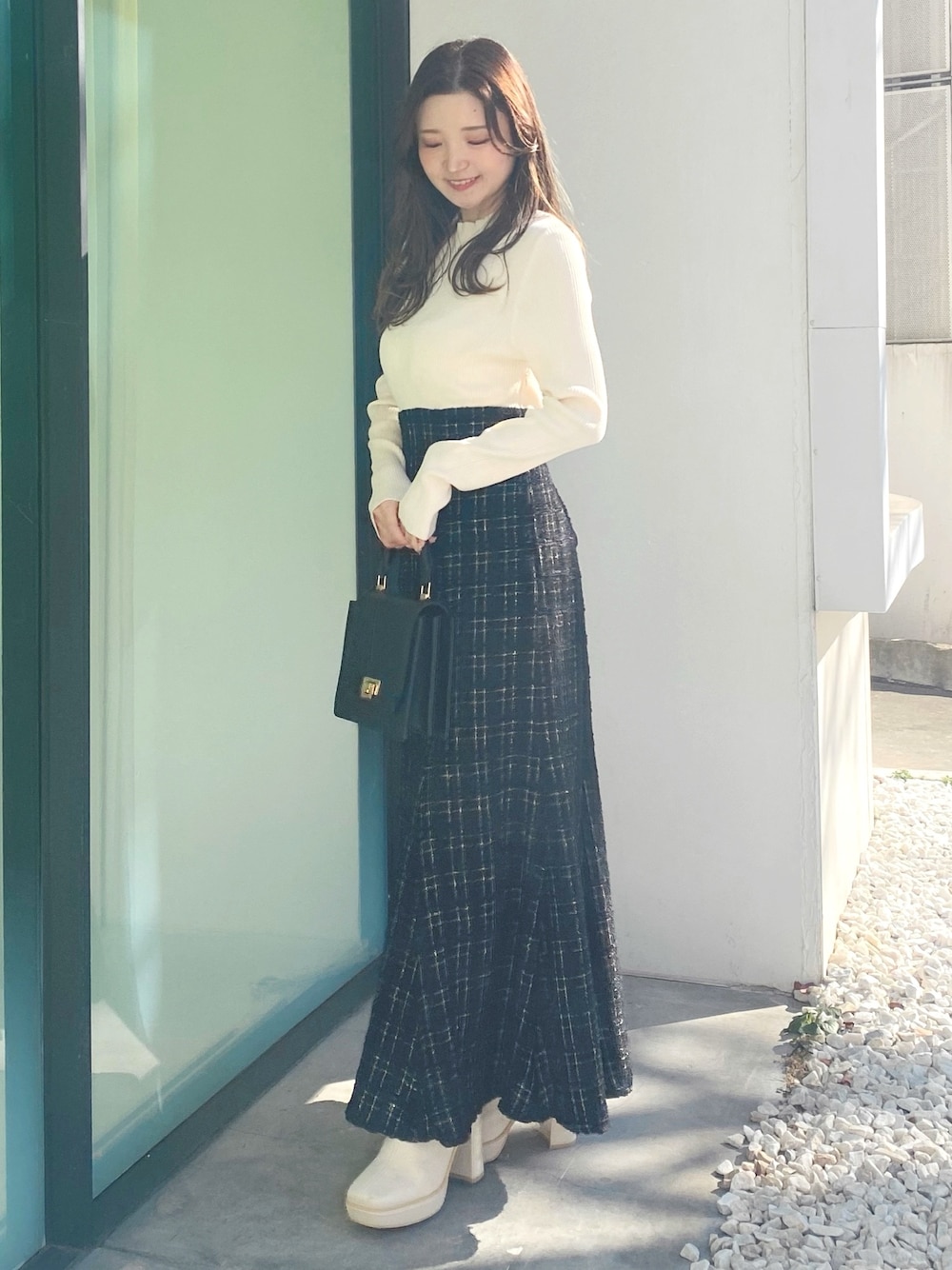 スタイルUP効果抜群🤍ワンピ 【ワンピース】程良いマーメイドシルエットのスカートなので、腰回り、骨格を気にせずに着られるワンピースです✨ハイネックですが首つまり感がなくすっきりと着れますよ♡
