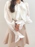 \ MERCURYDUO×小澤美里さんコラボ/ 【トップス】前後2wayで着用可能な、万能で使えるブラウス!!お袖のフリルがシンプルなブラウスに華やかさをプラスしてくれます✨ 春先にも、オフィスカジュアルにも、綺麗目なご予定などにも大活躍なブラウスです! コラボ商品↓ 【スカート】ミニ丈のボトムが苦手な方でも安心して履いて頂けるスカパンのデザインになっています♡ ウエストゴムで履きやすいのもポイント◎ 歩くたび裾が揺れる、女性らしいとっても素敵なスカートです🤍