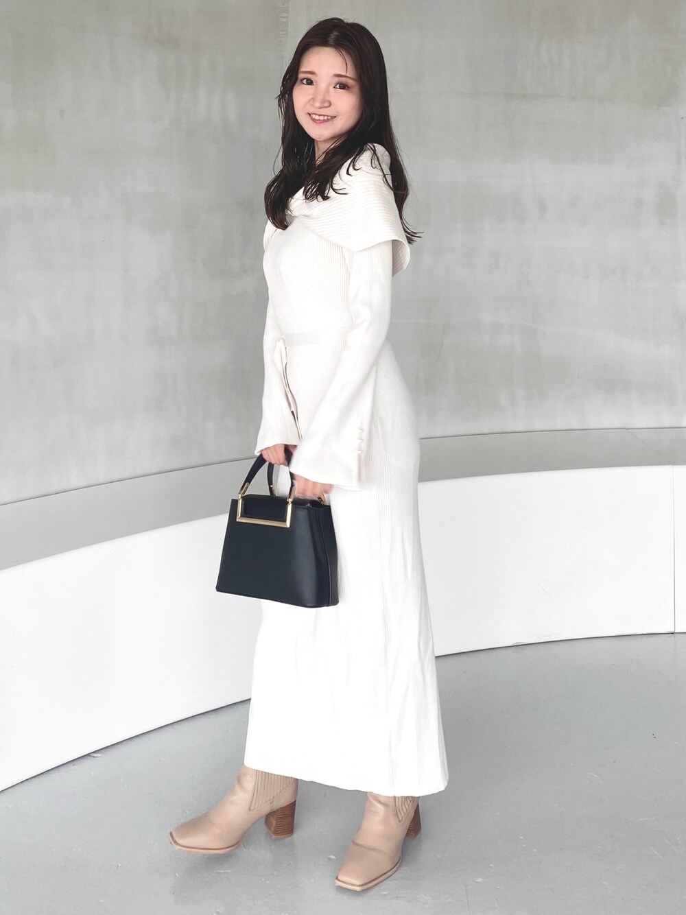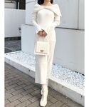 大人シンプルcode 🤍🖤 【ワンピース】2wayで着て頂ける大人可愛いデザインのニットワンピース♡ 生地感がさらさらとした柔らかい質感で、とても気持ち良いです✨スカートには、スリットが入っているのでちらっと足が見えアイボリーでも膨張せずに着て頂けますよ♪