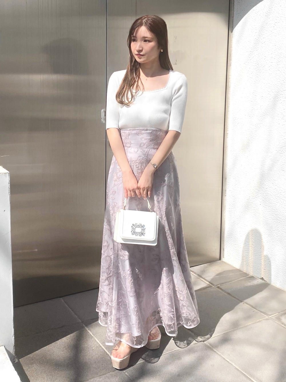 nayuu(MERCURYDUO)のニット/セーター「スクエアネックパールコンパクトニット」を使ったコーディネート