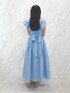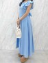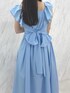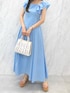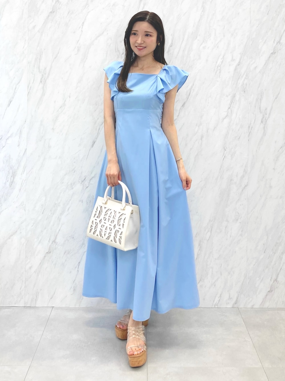 お上品なデートコーデ🤍 【ワンピース】淡いブルーの色味が涼しげで、夏にぴったりなワンピース🩵ラッフルのお袖でが可愛いらしさもありますが、シンプルなデザインなので大人可愛く着られる1枚です!ハイウエスト切替で、スタイルが良く見えるのもポイントです✨すぐに乾く素材なので、雨の日でも着られますよ!
