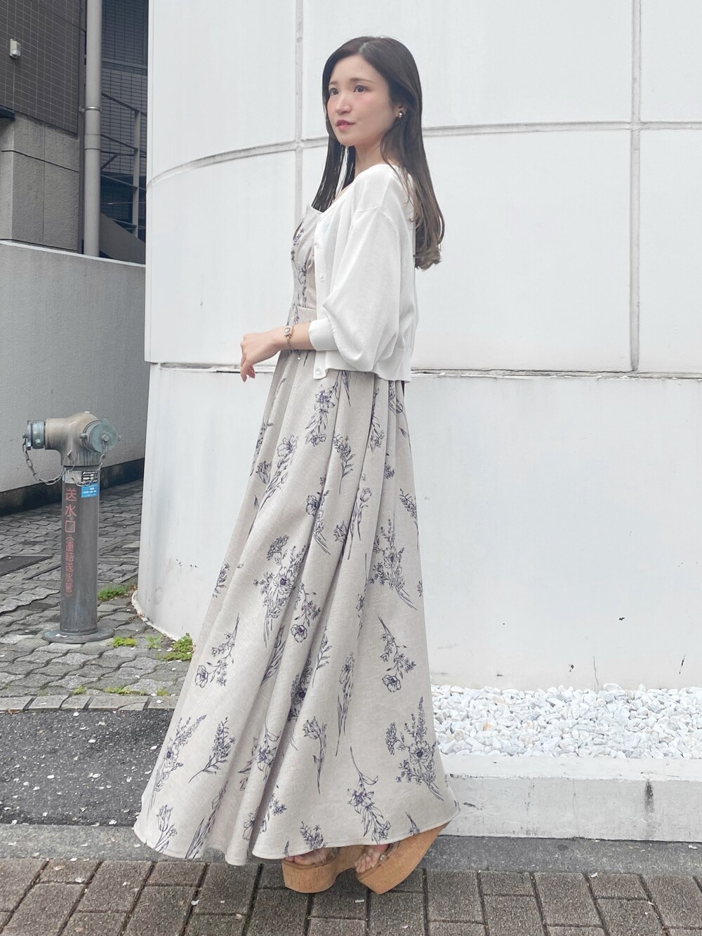 全店大人気ワンピース✨ 【ワンピース】全店大人気!のリゾートワンピース✨夏でも涼しく着られるリネンライクなのと、シワになりにくい素材なのでご旅行にもぴったり!!9月頃は、ジャケット合わせも大人っぽくおすすめです!!150cmでMサイズも大丈夫でした♡ヒールが5cmあると安心です! 【カーデ】どんなワンピースにも合わせやすい、五分袖の万能カーデです♡ 私は2色買いしました💞とても涼しくて羽織りやすいです! 冷房対策にもかかせないです!