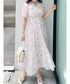 王道フェミニンコーデ🎀 水彩タッチの花柄なので、派手すぎずに 女性らしく着られる花柄ワンピース👗 5部袖なので、二の腕カバーされるのですごく着やすいです♡ 首元がVネックに開いているのでお顔周りもすっきりみえるのもポイントです!! 150cmでMサイズは長めでしたが、5cmヒール合わせなら大丈夫でしたよ♪