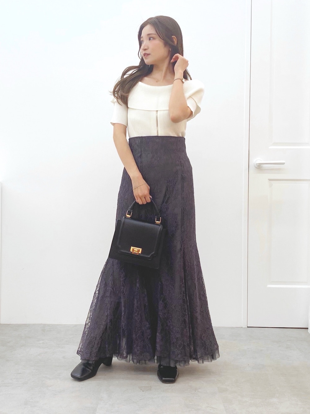 大人綺麗目code✨ 【トップス】今年トレンドのジップニットが、マーキュリーにも新登場!オフショルが苦手な私でも肩幅が広く見えずに、すっきりと着れたので感動しました✨ボトムスも合わせやすいので、おすすめなトップスです♡ 【スカート】腰回りがはってみえない美シルエットのマーメイドスカート✨トレンドのチュールが裾からちらっと見える、今までにないマーメイドスカートです🤍バックリボンでウエスト調整できるの、着ていて楽ちんです! 【シューズ】普段22.5cm 、36サイズ 少し余裕があるので分厚いソックスも履けます!