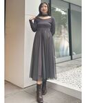 トレンド大人code✨ 【ワンピース】珍しいチャコールグレーの色味はおしゃれにも見えて、大人っぽく着れる大人女子おすすめのカラーです!スカートのキラキラがとっても素敵な1枚✨150cm Mサイズは、5cmヒールがちょうど良かったです! 【ブーツ】普段22.5cm 36サイズ 少し余裕があるので、分厚い靴下がおすすめです。 厚底でも、歩きやすくシンプルなデザインなので色んなコーデに合わせやすいです。