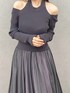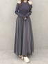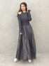 トレンド大人code✨ 【ワンピース】珍しいチャコールグレーの色味はおしゃれにも見えて、大人っぽく着れる大人女子おすすめのカラーです!スカートのキラキラがとっても素敵な1枚✨150cm Mサイズは、5cmヒールがちょうど良かったです! 【ブーツ】普段22.5cm 36サイズ 少し余裕があるので、分厚い靴下がおすすめです。 厚底でも、歩きやすくシンプルなデザインなので色んなコーデに合わせやすいです。