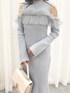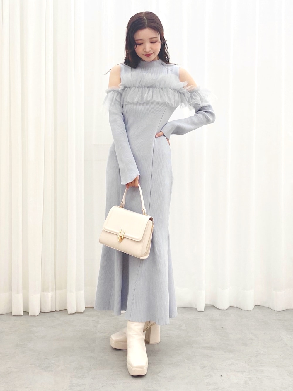 主役級✨きらきらワンピース 【ワンピース】程よい肌見せが可愛い🩵あざと可愛いワンピース♡ウエストラインがすっきり見えるデザインなのでニット生地でも、お腹周りも気にせずに着られました✨150cmMサイズでも長く感じなかったので、長めの丈感が好きな方にもおすすめです!! 【ブーツ】 普段22.5cm 36サイズ 少し余裕があるので、分厚い靴下などをおすすめします! ヒールが太めで安定感があり歩きやすいです!