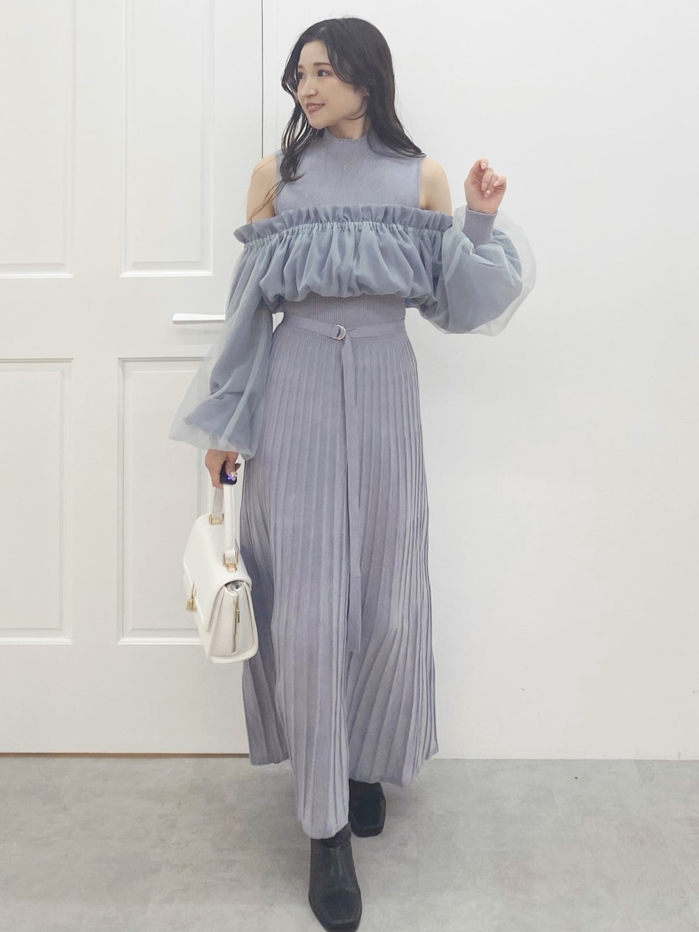 大人綺麗目✨ブルーワンピ 【ワンピース】150cm で、いつもMサイズだと少し長めですが、こちらのワンピースは元々丈感が少し短めなので、Mサイズでもバランス良く着れました🤍 【ブーツ】普段22.5cm 36サイズ 分厚い靴下が履ける余裕があるので、圧迫感がなく歩きやすいです。