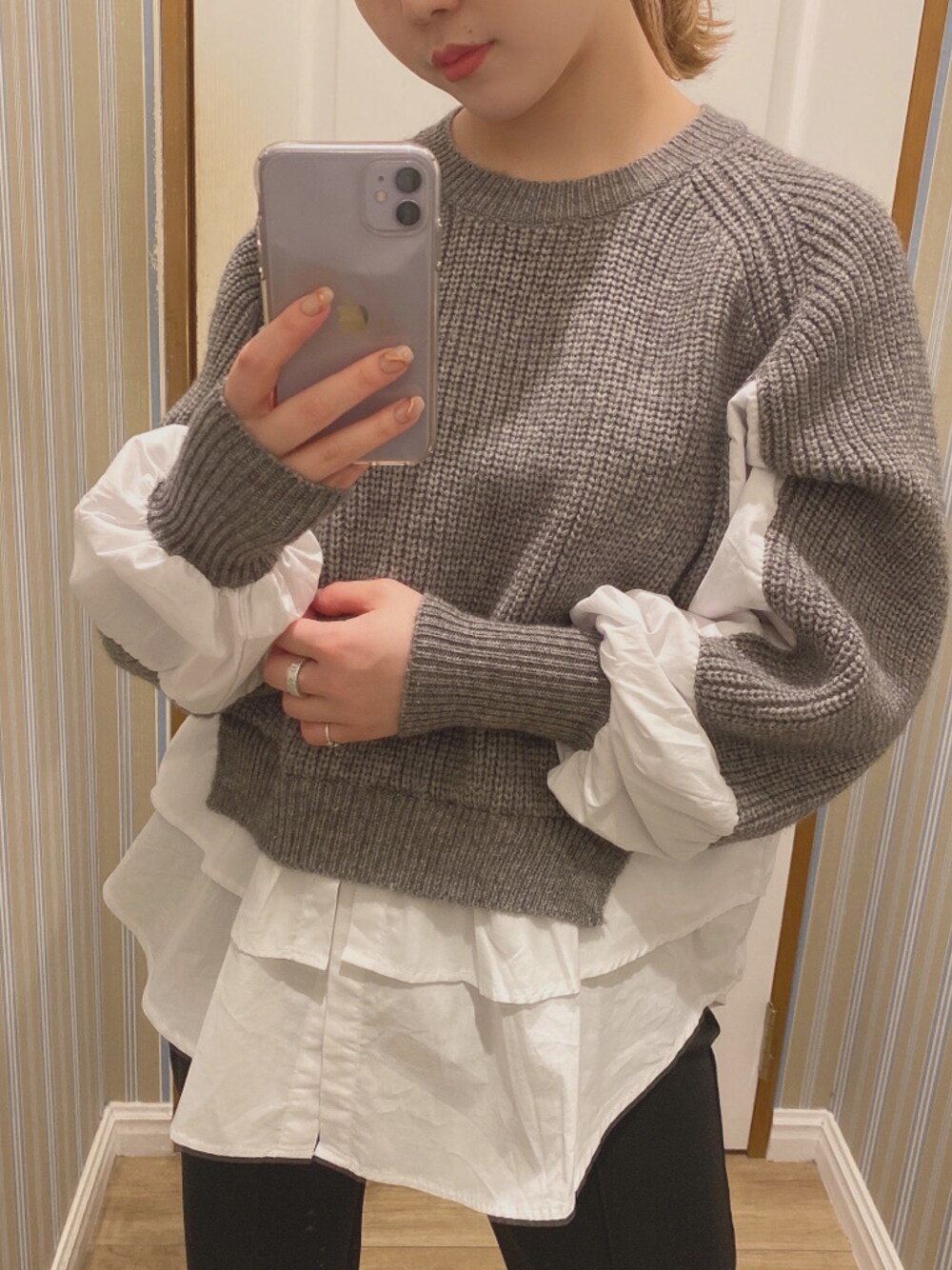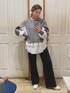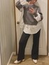 シャツをレイヤードしたようなデザインのトップスに、ゆるっとパンツを合わせた大人キレイめカジュアルコーデ。モノトーンでまとめる事でガーリー過ぎずに着ていただけます。足元はあえてアイボリーのショートブーツで合わせると抜け感が出て◎