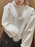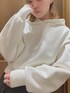 もちもちとしたボンディング素材で着心地が最高なパーカー。袖などはボリューム感がありますが、ウエストがきゅっと引き締まるので、バランス良く着ていただけます。首回りも詰まり過ぎず着やすいので、おうちコーデにもぴったりです。