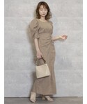 yuki (dazzlin)のワンピース「コットンタックボリュームショルダーワンピース」を使ったコーディネート
