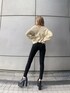 【EMODA定番のスタイルアップコーデ】 トップス ・前後2wayで着用可。デザインのクロスとシンプルなVネックの両方で着回しできます。 ・アクリル94%なのでニット特有のチクチク感がなく保温性が高いです。 ・カラー4色展開で着用はホワイトですが店頭ではカラーが人気です。 デニム ・3つボタンでハイウェストの位置が高め。 154cmの私でおへそから拳1多分の位置です。 ・こちらのSYMデニムは程よいホールド感とストレッチ性の高さがありのデニムです。 引き締め効果でヒップアップして見えるのも有難いです シューズ ・ソール5cmヒール10.5cmで傾斜感がないので8時間立ちっぱなしでいても足が痛くなりませんでした。 ・足の甲が高めの私でも合皮で柔らかいので擦れず着用することができました。