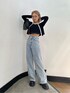 【低身長スタイルアップコーデ】 トップス ・キャミソールとカーディガンのセットだから着回し抜群 ・WEB限定で店頭にはないアイテム ・サイズはフリーでピッタリしてないので二の腕の華奢効果◎ デニム ・セットアップのデニムを着回ししたのですが、色味が少しケミカル調なのでシンプルなトップスとの合わせが可愛いくなります ・154cmの私で4cmほどのソールの高さのシューズで合わせてくるぶしくらいの丈感 シューズ ・Mサイズ着用インソール3.5cmインヒール6cm ・かなり軽くてブーツを履いてる感覚よりスニーカーの感覚に近い軽さ メガネ ・縁が太すぎないのでデイリーに使える