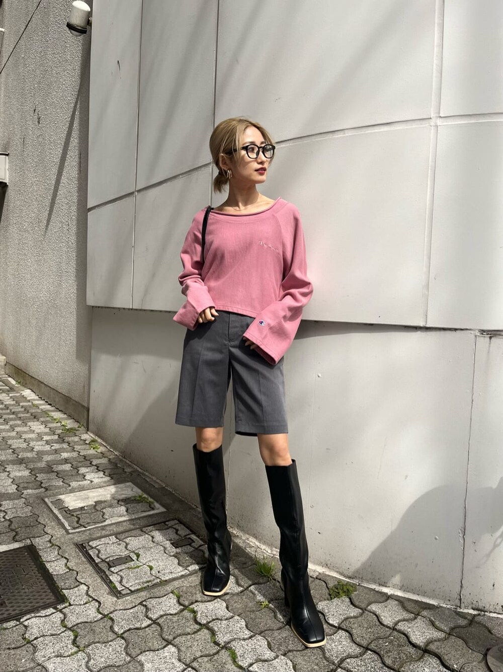【カラートレーナーで大人コーデ】 トップス ・championとのコラボトレーナーで生地は裏毛なのでこれから春にピッタリ。 ・丈感は154cmの私でおへそから2cm位。 ・少しくすんだピンクなので大人っぽく着れる。 ハーフパンツ ・カラーのトレーナーとの合わせでおしゃれ感大人感◎ ・154cmの私がSサイズ着用で膝上の丈感。 ブーツ ・154cmの私で膝下があたるくらいの長さ ・ヒール9cm筒周り34.5cmでスッキリサイズ。無駄なたるみができず足が細く見える。 バッグ ・まちが広く500mlのペットボトルも入る ・サイドのチェーンがアクセント