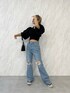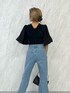 【アクティブなシチュエーションにピッタリ】 【トップス】・女性らしさを演出できるワイドVネック・Vネックとウエストはゴムなので着脱が楽ちん・オフショルの2way・腕のパフにボリュームがあるので肘から手首が細く見える 【デニム】・今年はずるくらいで履くのがトレンド・クラッシュ部分が膝より上なので脚長効果抜群・クラッシュ部分が膝より上なことにより伸縮性はないが関節も曲がりやすい 【バッグ】・まちが広く500mlのペットボトルも入る ・サイドのチェーンがアクセント