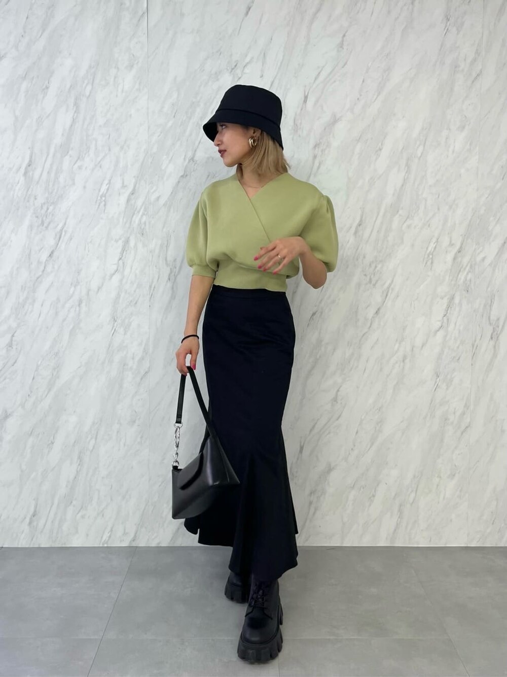 【綺麗目デートコーデ】 【トップス】・ボンディングのような弾力のあるニット・ナイロン100%の為毛玉になりずらいく夏でも着れるニット素材・2wayでオフショルも可・ウエストがキュッとなっていてくびれラインが綺麗にみえる 【スカート】・ウエストは後ろがゴムになっており楽ちん・154cmの私で丈感くるぶし位(Sサイズ着用)・素材はしっかりめなのでインナーラインが出づらいのも◎・マーメイドスカートはくびれがあるように見えるのでスタイルアップ効果抜群 【バッグ】・まちが広く500mlのペットボトルも入る ・サイドのチェーンがアクセント 【シューズ】 ・Mサイズ着用インソール3.5cmインヒール6cm ・かなり軽くてブーツを履いてる感覚よりスニーカーの感覚に近い軽さ