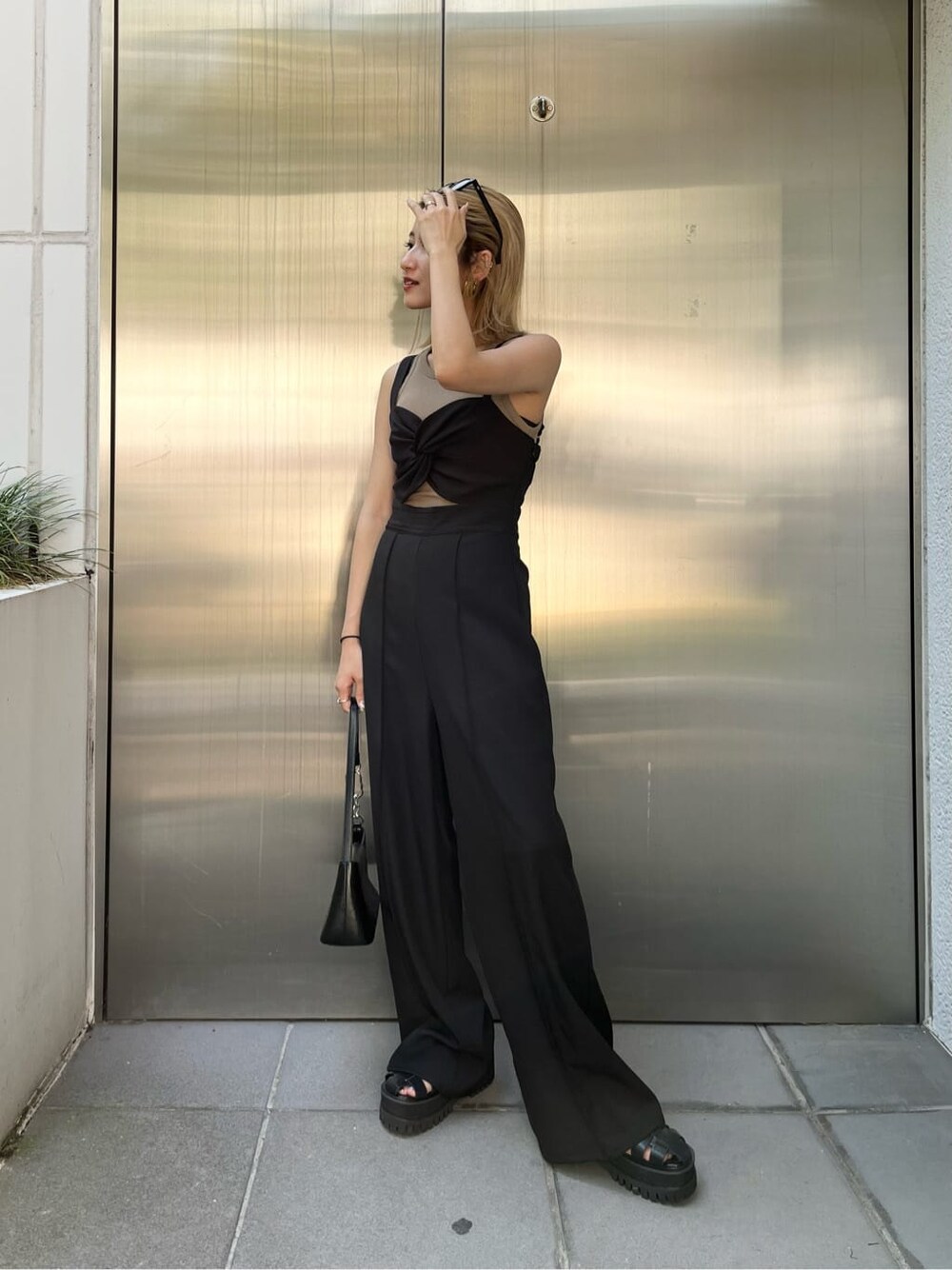 田澤眞梨亜(EMODA)のつなぎ/オールインワン「アシンメトリーツイストオールインワン」を使ったコーディネート