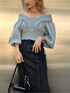 【デートコーデ】【トップス】・オフショルダーとしても着れる2way・ワイドなギャザーゴムでピタッと止まるのでオフショルにしても下がってこない・154cmの私でおへそ上位の着丈でショート丈【スカート】・後ろのレースアップで緩さ調節可能・マーメイドシルエット+センターラインのフリンジで下半身のラインが綺麗に見える・Sサイズ着用【バッグ】・まちが広く500mlのペットボトルも入る ・サイドのチェーンがアクセント