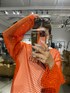 【トレンドカラーコーデ】【メッシュトップス】・154cmでお尻が隠れる着丈・荒目のメッシュだから通気性が良く長袖だが夏場でも◎【インナーのTシャツ】・ゆったりとしたデザインのため華奢効果◎・腰骨少し隠れるくらいの着丈