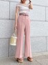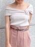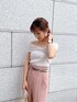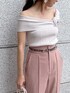 着るだけでスタイルアップ見え間違いなし!トレンドカラーの美脚パンツで大人カジュアルなコーディネートにしてみました!パンツはピンクでもちょっとくすんだカラーのピンクなので甘くなりすぎないカラーになっております!パンツは太すぎないフレアなシルエットでセンタータックも入りより足をスッキリ長くみせてくれるのも嬉しいポイントです♡ピンクは他のカラーと違ってツルッとした素材です!オフショルニットは変形リブで伸縮性があり気心地抜群!夏の女子会にオススメなイメージしたきれいめカジュアルコーデです!