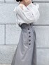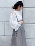 着回し力抜群♡おしゃれ可愛いブラウスコーデのご紹介です!ブラウスは肩のボタンを開けてあざと可愛く…締めた状態でフォーマルっぽくも着れる2wayタイプ!袖の大きなフリルがポイントでより手首を華奢みせしてくれます♡袖口にはゴムが入っているので袖をあげても落ちてくる心配はありません!ハイウエストデザインのスカートはウエストまわりをよりスッキリみせてくれるのも嬉しいポイントです♡カラーはカーキですがシャンブレー素材で光沢感がありグレーっぽい色みになっております!Sサイズ着用で足首ギリギリの丈感なので低身長の方はヒールを合わせていただければ◎ブラウス合わせで大人フェミニンな着こなしもオススメですが秋冬はリブタートルニットを合わせカジュアルなコーディネートで着ていただくのもオススメです♡