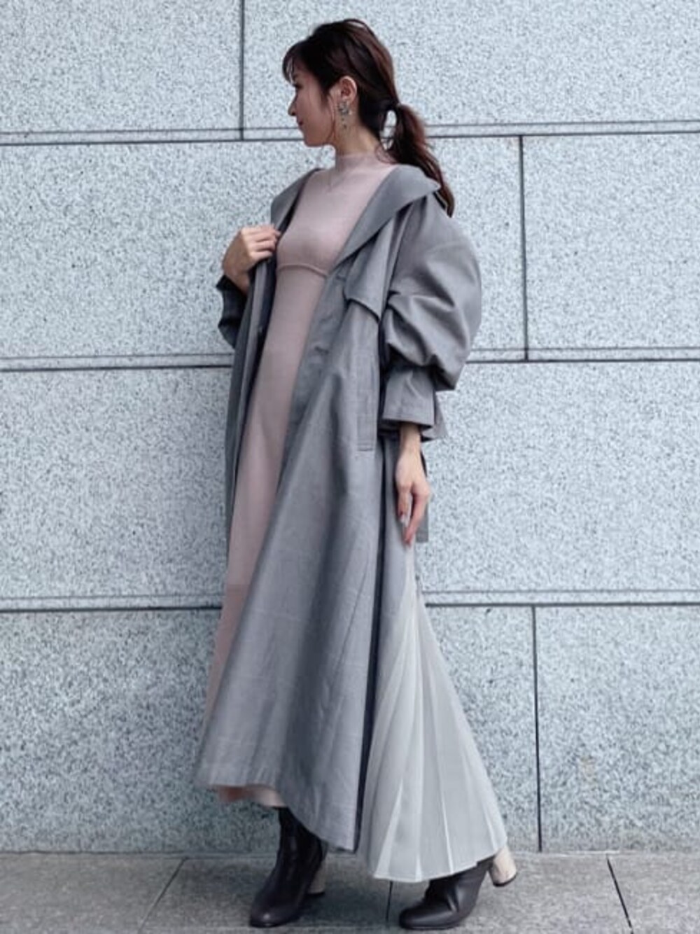 全店大人気!バックディティールワンピースのオススメコーデ♡まだちょっと暑い今時期は一枚サラッと着こなしアウターを合わせるのがおすすめです!ワンピース一枚でも胸下切替、マーメイドシルエットなので体のラインがキレイに見えロングアウター合わせてもバランス良くキレイに着こなしていただけます♡アウター着用カラーはハリのある布地なのでベージュに比べフォーマルな雰囲気に…♡チェック柄でもカジュアルに見えすぎないデザインなのでお仕事、プライベート両方で着まわせること間違いなしです♡私はSサイズ着用しておりますが足首上くらいの丈感なので小柄な方にもおすすめです!ボタンを閉めたスタイルはワンピース風の見え感に…♡周りと差がつくオシャレトレンチ!!