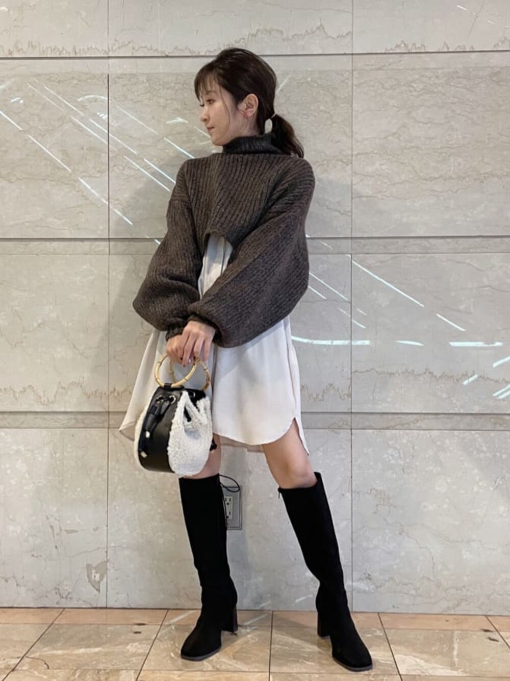 [ワンピ]3wayで着れるオシャレな一枚!中のシャツは少し透け感があるのでペチコートやインナーを合わせていただくと◎ニットはモコモコしすぎないのでアウターも羽織りやすいです!