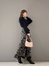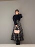 ハイゲージのニットはサラッとしているので着心地抜群。春先も着ていただける素材です。スカートはSサイズ着用でくるぶしくらいの丈感です。ハイウエストなのでウエストラインがキレイに見えます。ブーツは23.5センチ幅広で36サイズを履いています。ピッタリサイズ感でもストレッチ性があるので長時間履いていただけます。
