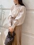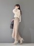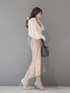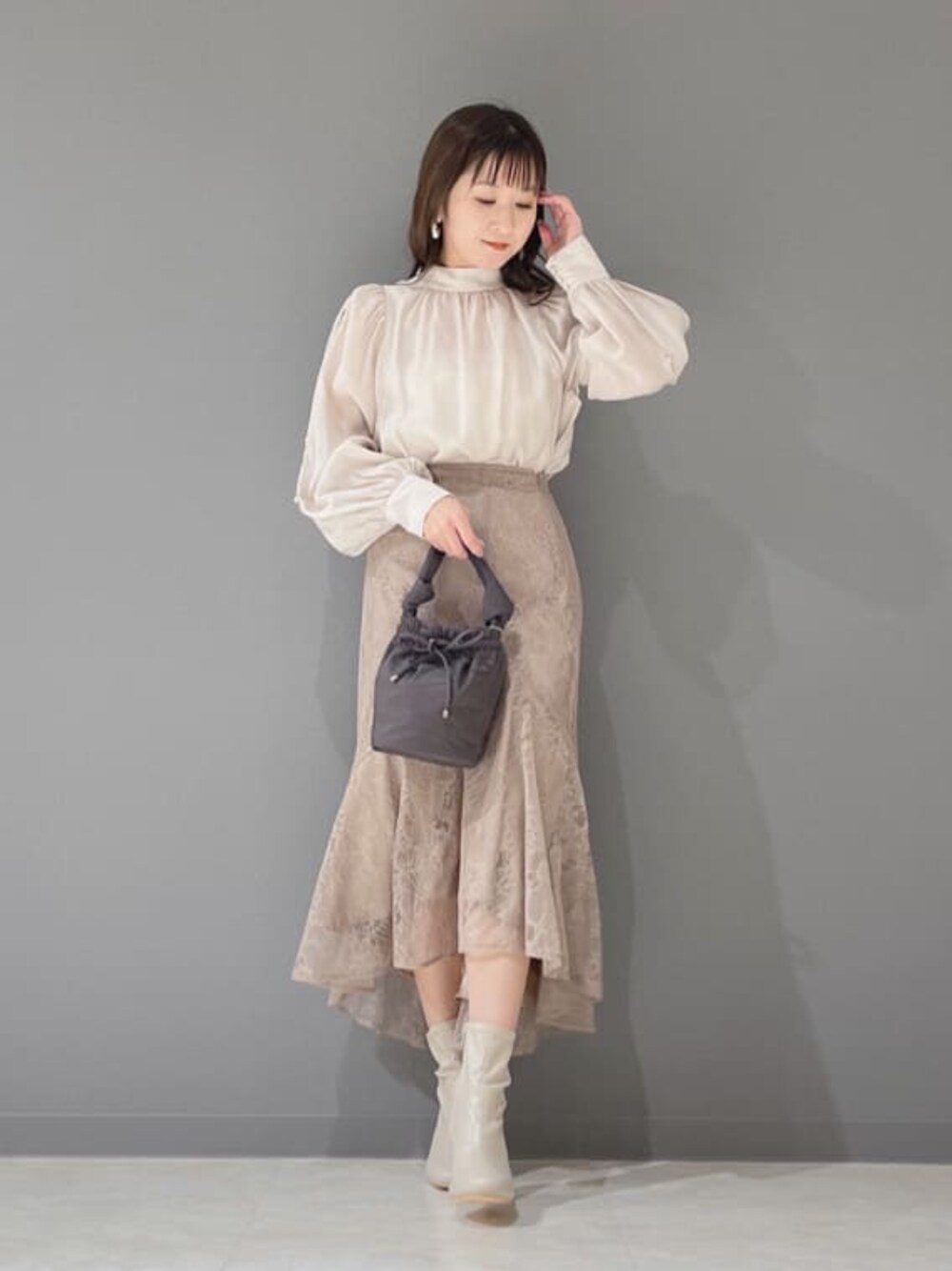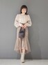 ブラウスは袖が少し長めですがカフスがピッタリしているので少しボリュームが出てよりフェミニンな雰囲気に見えます!スカートは身長151センチSサイズ着用。こちらのスカートはマーキュリーの他のスカートよりピッタリした作りです。クリームがかったブラウンのカラーです。ブーツはストレッチ入りで長時間履いても疲れない作りです!