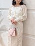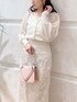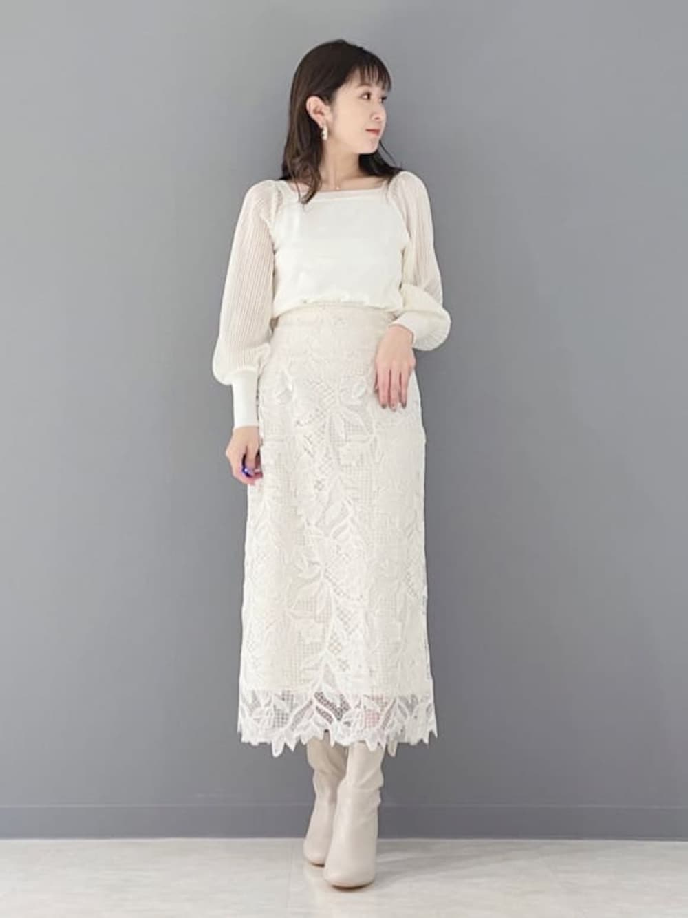 淡色カラーが大人可愛い!春のデートコーデ(ニット)ラメ糸の入ったパワショルの袖が一気に華やかな雰囲気にみせてくれます。インがしやすい短丈のニットです。前後2wayボタンを後ろにしてシンプルに着ていただくのもオススメ!(スカート)Sサイズ着用。足首上の丈感なのでフラットシューズ合わせでも◎後ろに深いスリットが入っているので動きやすいです。