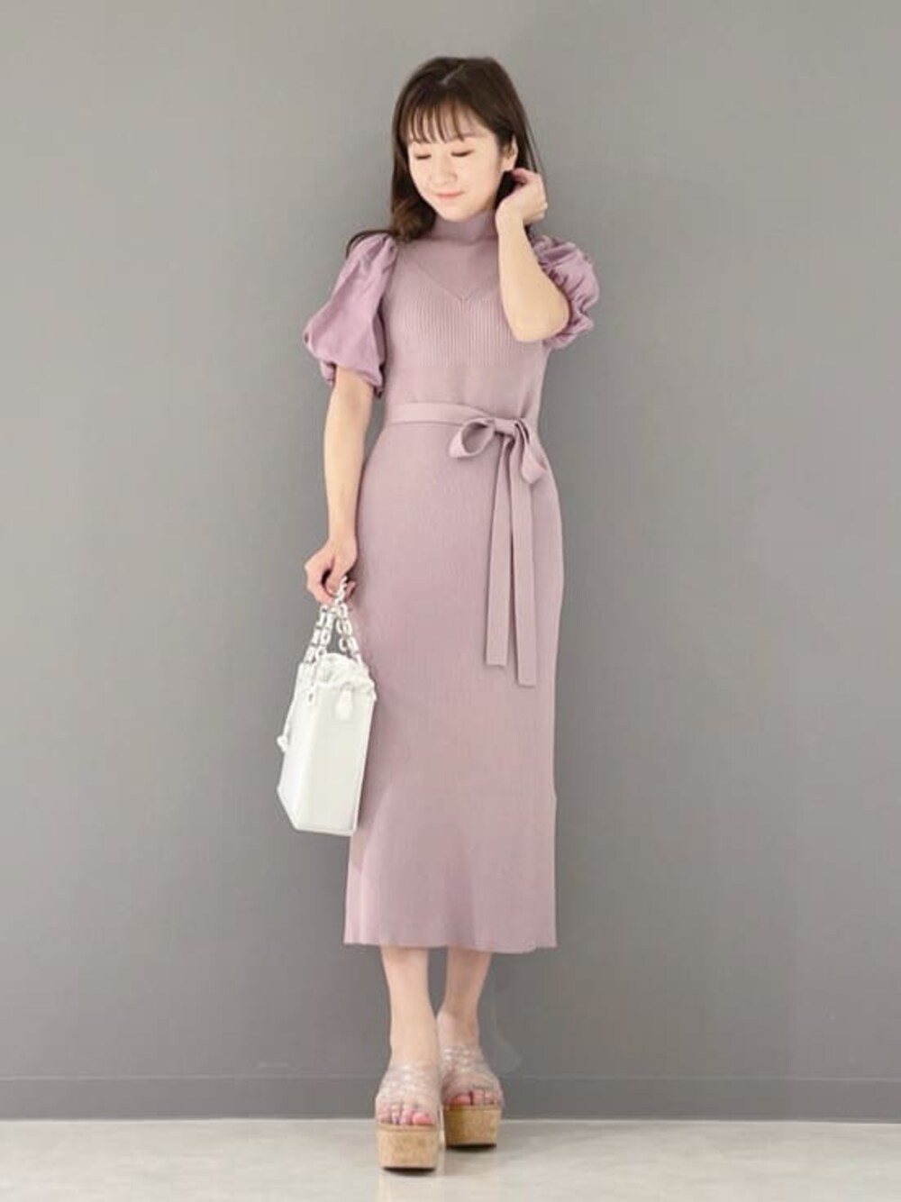 kaho (MERCURYDUO)のワンピース「オープンショルダー異素材スリーブニットワンピース」を使ったコーディネート