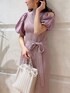 くすみピンクが大人可愛い!春のデートコーデ♡(ワンピース)身長151センチでくるぶし10センチほどの丈感で短めです。ビスチェ風のニットデザインで切り替えも入っているのでスタイルが綺麗に見える一枚です。肩の開きも広すぎずインナーもみえません。(シューズ)ヒールが高いですが安定感のあり大人気の定番のサンダルで歩きやすく疲れません。