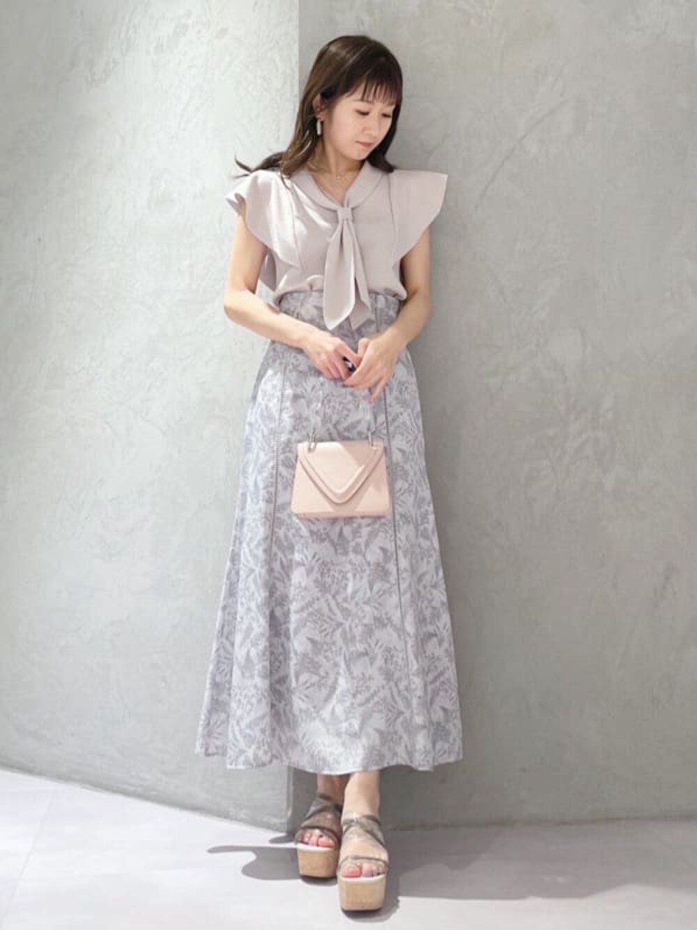 淡いカラーが大人フェミニンな、お食事デートコーデ♡(トップス)もちっとした柔らかい素材で着心地抜群!袖フリルでも首元が開いているのでスッキリ華奢みえします(スカート) 身長151センチ Sサイズ着用。くるぶし上の丈感です。ハイウエストデザインなのでウエストスッキリ見えします!(シューズ)ヒールが高いですが安定感のあり大人気の定番のサンダルで歩きやすく疲れません。