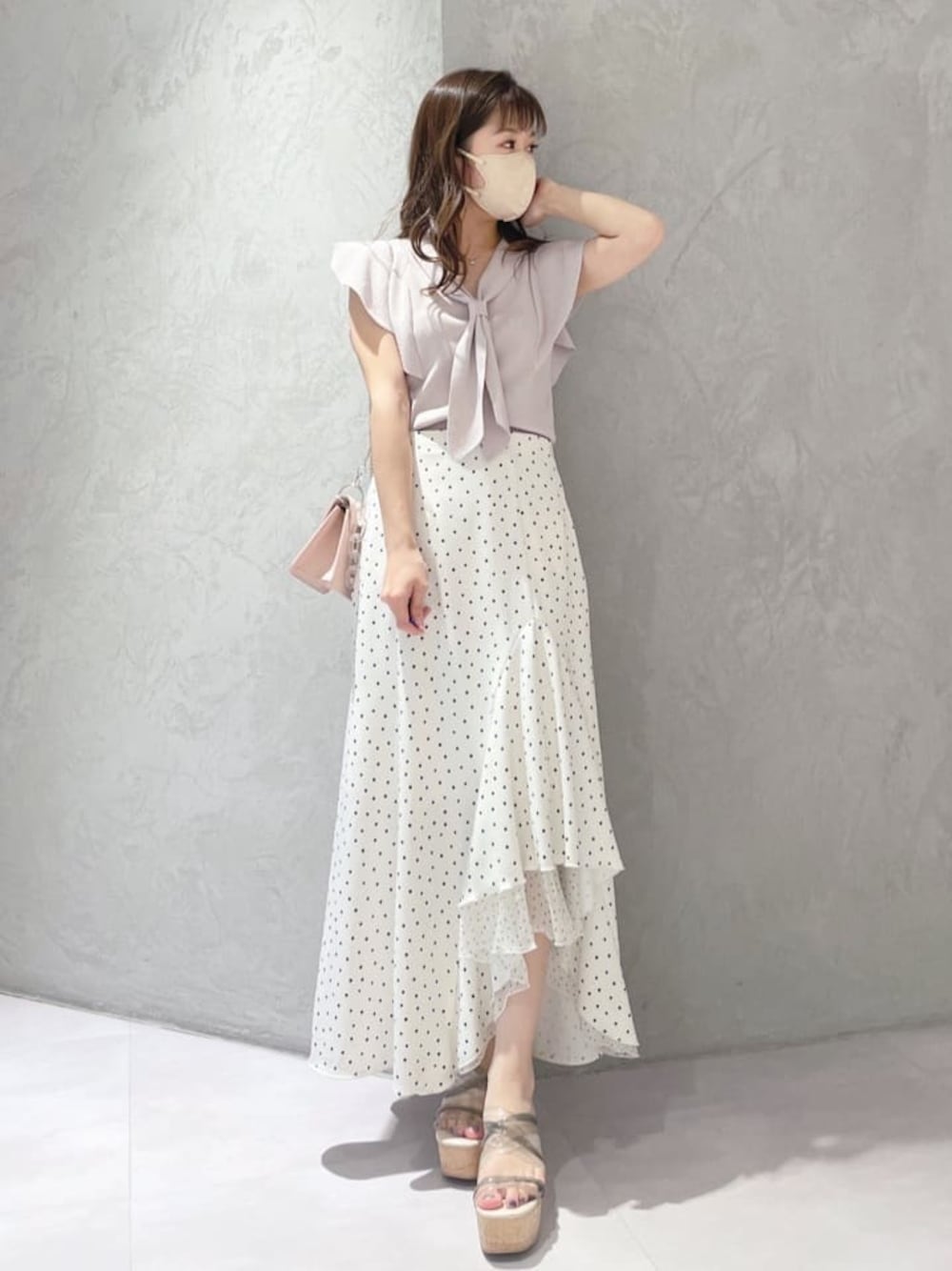 淡色カラーが春っぽい♡オススメお出かけコーデ! (トップス)もちっとした柔らかい素材で着心地抜群!袖フリルでも首元が開いているのでスッキリ華奢みえします(スカート) 身長151センチSサイズ着用。足首上の丈感なのでフラットシューズを合わせても◎イレヘムデザインなので足がキレイに見えます(シューズ)ヒールが高いですが安定感のあり大人気の定番のサンダルで歩きやすく疲れません。