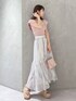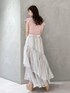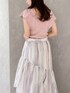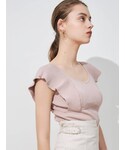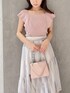 パステルカラーが大人フェミニンな♡初夏のデートコーデ!(トップス)白混じりの薄いカラーのピンク色です。定番ラッフルニットは前後2wayで着ていただけます。袖のフリルはボリューム控えめなので肩の張りは気になりません!首元はインナーが見えないくらいの開きです(スカート)身長151センチMサイズ着用。後ろの長さが足首ギリギリ。ウエストは後ろ部分がゴムなので楽に履けます。(サンダル)23.5幅広ですが通常のサイズ感でちょうどよいです。ウェッジなので長時間履いても疲れにくいです!