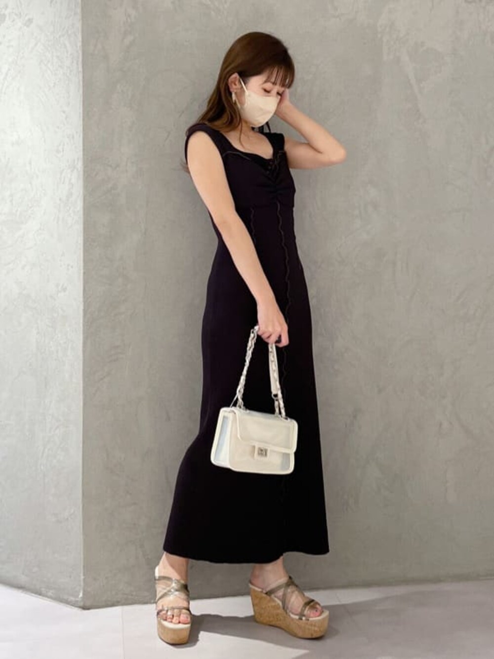 初夏にオススメ!大人カジュアルワンピース!(ワンピース)身長151センチで足首下の丈感です。カットソー素材なので夏場でもサラッと着ていただけます。(サンダル)23.5幅広ですが通常のサイズ感でちょうどよいです。ウェッジなので長時間履いても疲れにくいです!