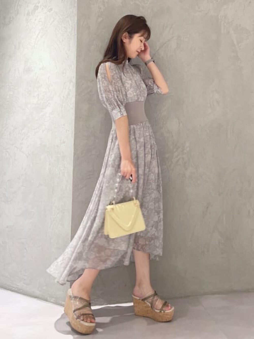 kaho (MERCURYDUO)のワンピース「オープンショルダーウエストリブ切替花柄ワンピース」を使ったコーディネート