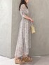 (リール着用ワンピ)王道花柄ワンピはウエストリブで一枚でスタイルアップできるデザイン!イレヘムデザインで動いた時のスカートのふわふわ感もとても可愛いです!